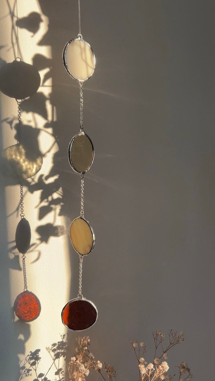 Lead-free stained glass Suncatcher on a silver stainless steel chain.