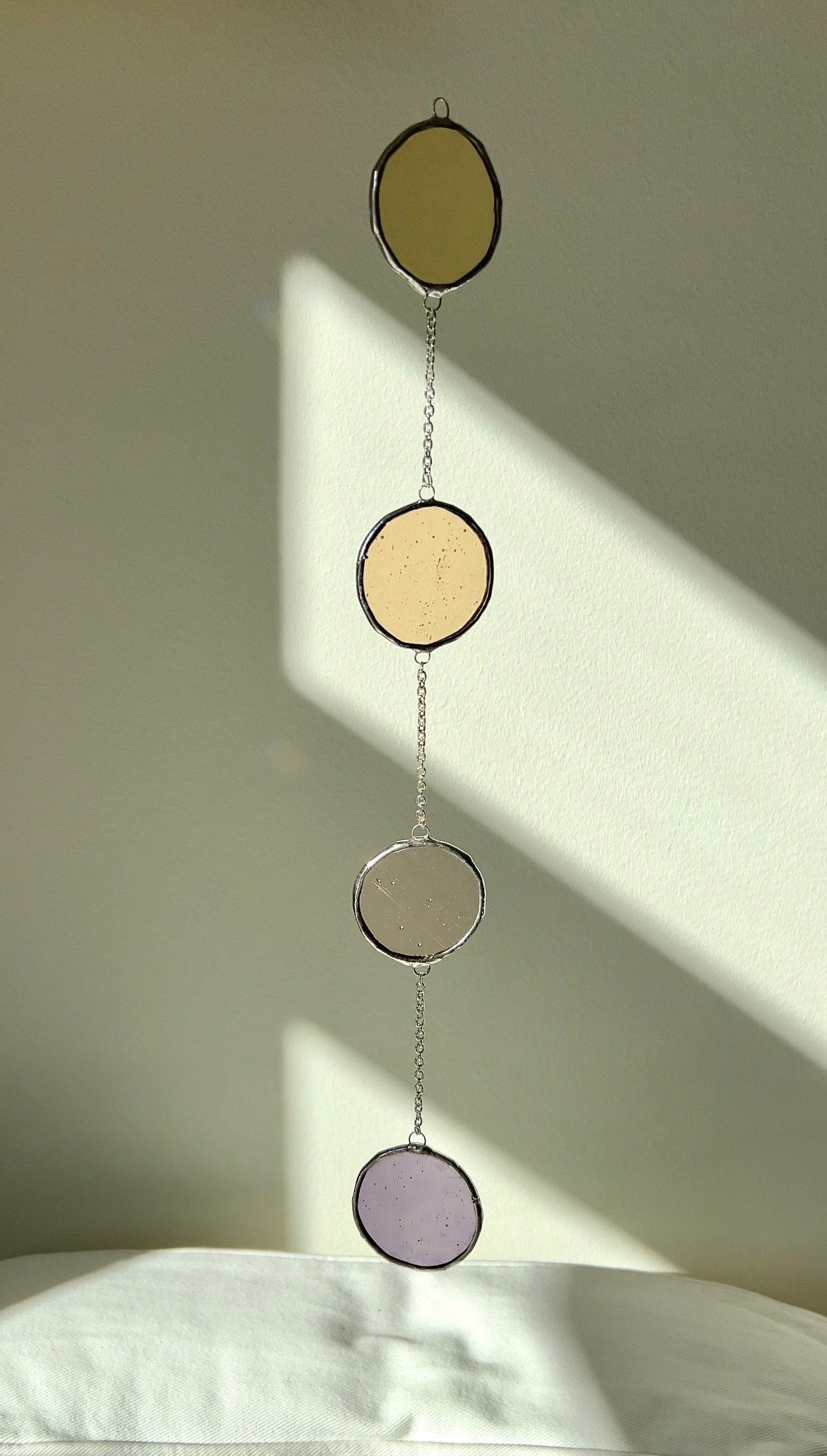 Lead-free stained glass Suncatcher on a silver stainless steel chain.