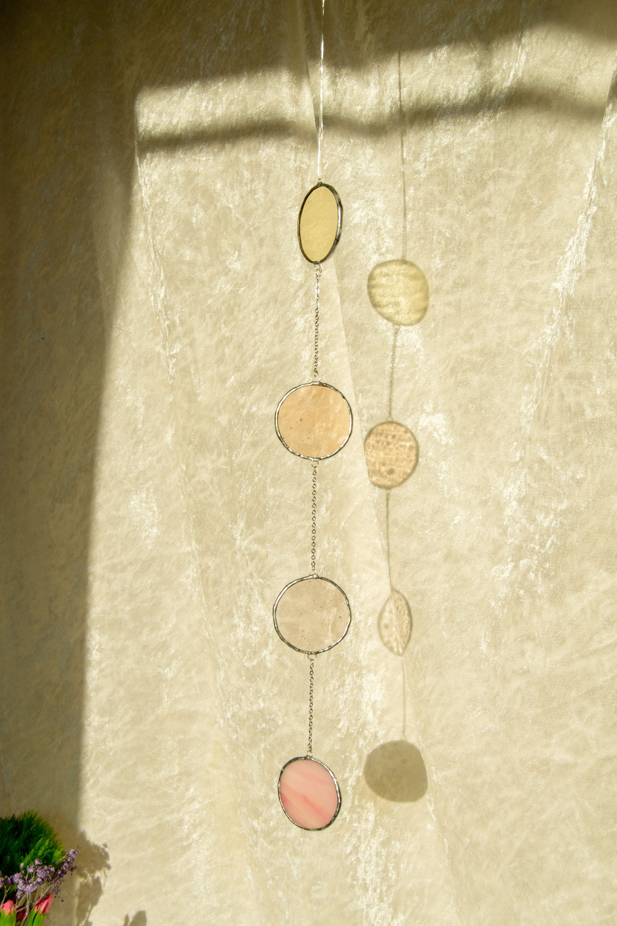 Lead-free stained glass Suncatcher on a silver stainless steel chain.